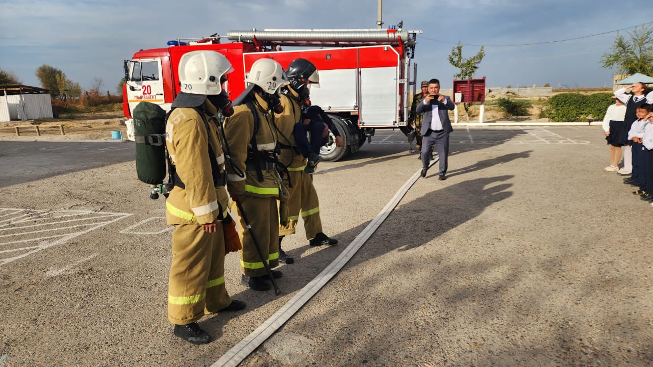 Ғимараттағы оқушылар мен қызметкерлер дабыл қосылғаннан кейін жылдам сыртқа шықты. Бұл олардың өрт болған жағдайда қауіпсіздік ережелерін сақтағандарын білдіреді. Олардың барлығы ғимараттың арнайы жиналатын орнында сапқа тұрғызылды. Осы оқу- жаттығу дабылына байланысты келген өрт қауіпсіздігі бойынша ережелермен №20 өрт сөндіру бөлімінің карауыл бастығы, азаматтық қорғау сержанты Артық Санаев таныстырды.
