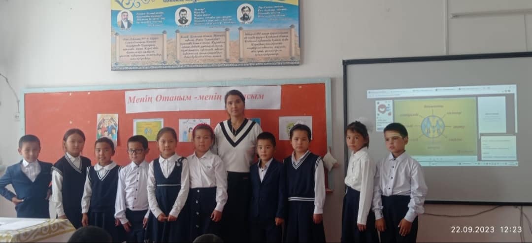 Түркістан облысы Мақтаарал ауданы "№21 Нұрлы жол жалпы орта мектебі" коммуналдық мемлекеттік мекемесінде 22.09.2023 ж күні Бастауыш сынып бірлестік сыныптарында "Менің Отаным-менің отбасым!" тақырыбында тәрбие сағаттары өтілді. Отбасы – адам баласының түп қазығы, алтын ұясы. Адам баласы шыр етіп дүниеге келгеннен бастап, сол ортаның ыстық суығына бейімделіп, ықпалына көніп, осында ер жетеді. Мақсаты: Отбасы туралы түсініктерін бекіту, отбасында үйлесімді қарым — қатынас дағдыларын қалыптастыру, туған — туыстар арасындағы байланыстарды ұғынуға көмектесу.