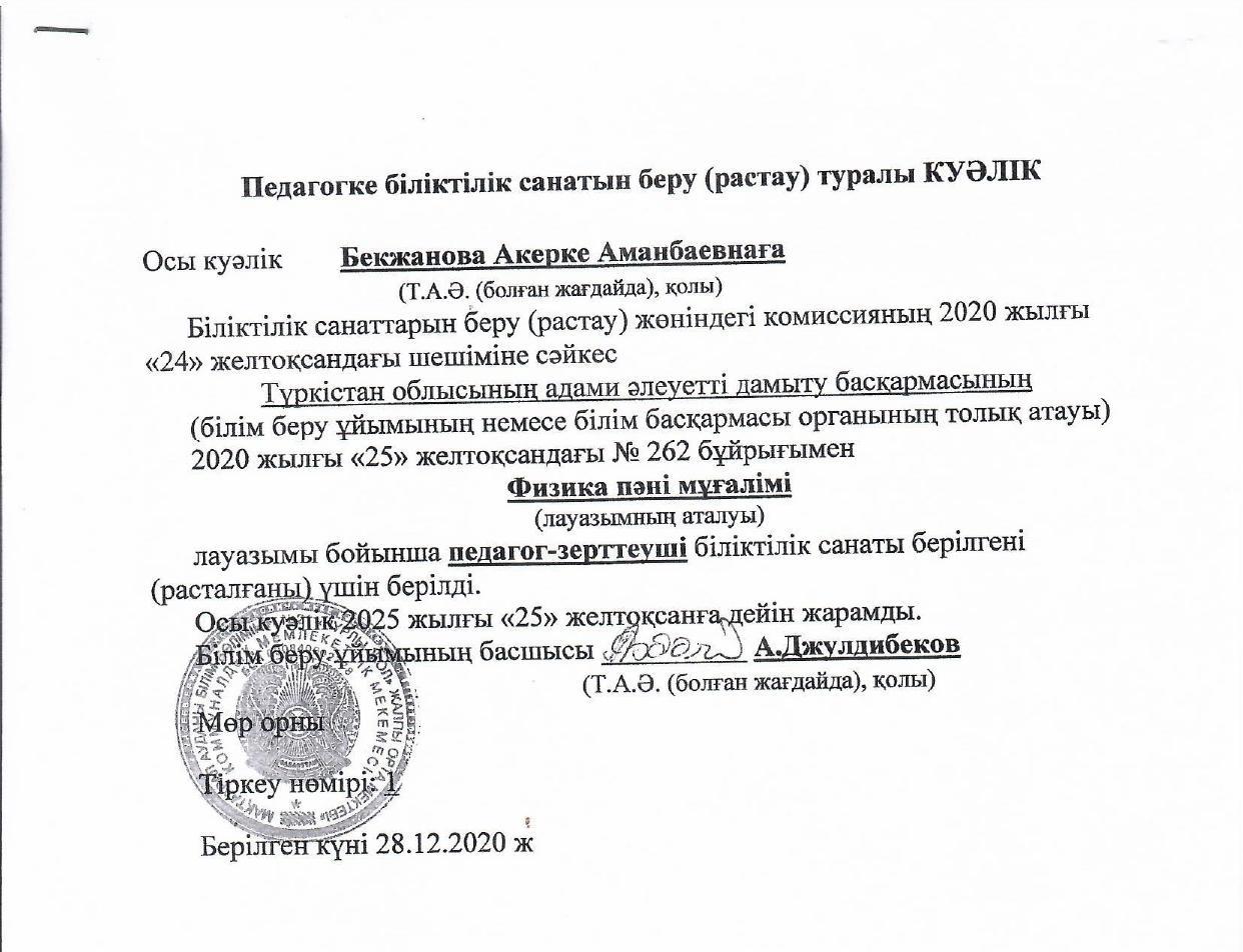 » » » Бекжанова Акерке Аманбаевна