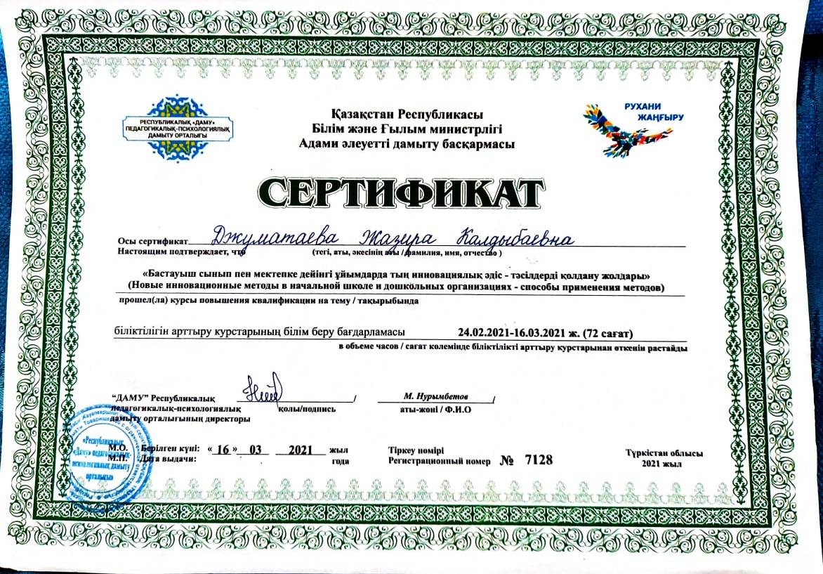 » » » Джуматаева Жазира Калдыбаевна