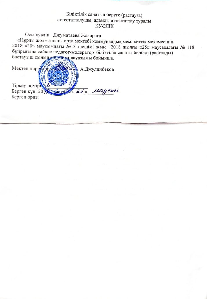 Джуматаева Жазира Калдыбаевна » "Нұрлы жол" ЖОМ
